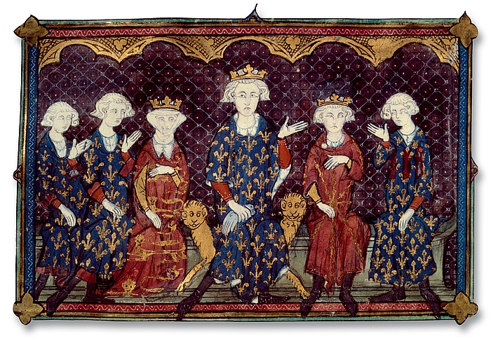 В центре этой знаменитой миниатюры изображен король Филипп IV Красивый. По правую руку от него сидит его дочь Изабелла, по левую, сын Людовик, король Наварры. Все трое изображены в коронах, символизирующих их статус. Филипп де Пуатье находится слева от Людовика, Карл де Валуа и Карл де Ла марш – справа от Изабеллы.