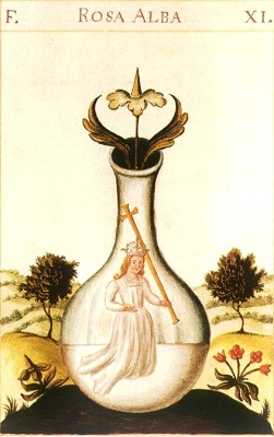 Альбедо – вторая стадия в изготовлении философского камня. Из получившейся светящейся жидкости выпаривают шлаки, чтобы явить миру малый эликсир (Aqua Vitae), способный превращать металлы в серебро.