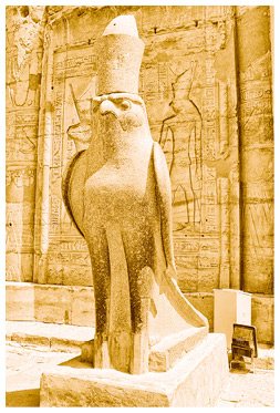Статуя Хора перед храмом в Эдфу.