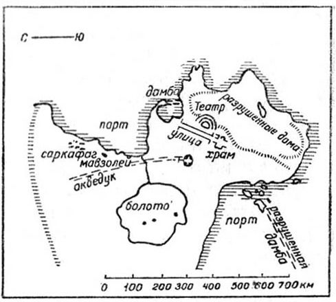 Плоская вершина полуострова была покрыта разрушенными современными постройками, среди которых находились также остатки и древнего города![1015]1015
