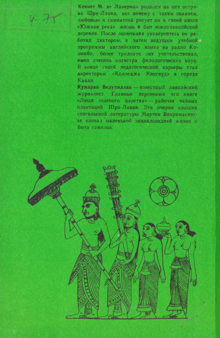 Предлагаемые вниманию читателей произведения ланкийских авторов Кеннета де Ланеролла и Кумарана Велупиллаи посвящены бытоописанию двух упомянутых выше этносов – сингалов и индийских тамилов. Оба автора не являются профессиональными писателями, как, впрочем, и большинство других представителей ланкийской литературы. Первый из них – педагог, второй – журналист. Но им обоим удалось в высокохудожественной форме донести до читателя свои чувства и образы, которые ассоциируются у них с теми этническими группами, к которым они сами принадлежат: у одного – с сингалами, у другого – с индийскими тамилами.