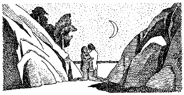 К полудню Саран отвезла кожаные ведра с чистой посудой в орду и сразу вернулась. Тенгери ждал девушку у подножия скалы. Окутанные прохладой и тенью, они начали подъем. Оказавшись наверху, на гладкой покатой площадке, откуда открывался роскошный вид на окрестности, они то и дело поглядывали на белый песчаный камень с двумя березками по бокам, залитый сейчас ярким солнечным светом.