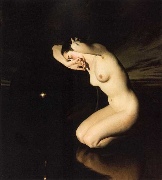 Рассматривая шедевры Хосе Марии Родригеса Акосты с прекрасными обнаженными, мало кто вспомнит, что до 1910-х в Испании было запрещено изображение женской наготы. В картинах данной серии (к ней относятся в том числе работы «Лежащая обнаженная» и «Ночь») завороженные и завораживающие тела сияют лунным волшебством, смотрятся порождением ночи. Сновидение было популярной темой в западноевропейском искусстве, начиная с символизма. И здесь погруженная в гипнотическую темноту женщина, освещающая ее своим телом, живет иной, потусторонней жизнью. Виртуозно переданное художником отражение героини просматривается в хрустальном шаре (вспомним, что его используют гипнологи) и темной влаге, на поверхности которой она преклонила колени.
