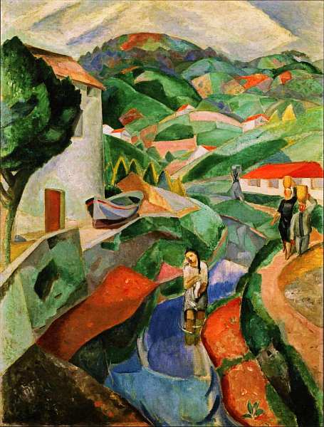 Кубизм – направление модернизма, одним из постулатов которого является антипсихологизм. Да и при рассмотрении пейзажей обычно не следует пускаться в глубокие размышления. Но блестящие исключения из правил остаются в душе и памяти зрителя. Данный «портрет» долины реки в Стране Басков оказывается наделен человеческим ликованием от ясного, солнечного дня, открывающего щедрость природы, и показывает упоение художника этим впечатлением. Конечно, легко обнаруживаются условность передачи пространства и цвета, явные зоны, словно фрагменты пазла складывающиеся в общую картинку. И многие могут согласиться с мнением русского философа Н. Бердяева, который называл опыты кубистов демоническими гримасами скованных духов природы. Но в полотне испанского маэстро эти духи оказываются в «добром настроении» и существуют в полной гармонии с человеком. Будто из единой материи сотворены голубая лента реки, ее «силуэту» вторят постройки, зеленые холмы, теплые песчаные отмели и черепичные крыши. Кубисты говорили, что глаз умеет заинтересовать разум своими заблуждениями. Заблудившийся в равнине басков взор художника соблазняет здесь не разум, а чувства.