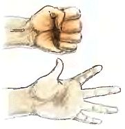 Существуют аналогичные упражнения для рук. Когда вы стоите в стойке чжан чжуан «Держание мяча», сожмите левую руку в кулак. Плотно сжимайте кулак в течение пяти секунд. Затем расслабьте его и полностью откройте кисть. Расставьте пальцы как можно больше в стороны.