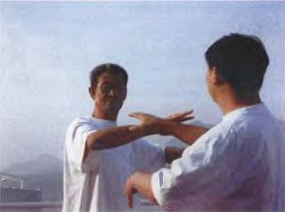 Благодаря тренировкам чжан чжуан энергетическая структура вашего тела становится более прочной. Ясное умственное осознание этого факта жизненно важно для силы дачэн-цюань. Это секрет расслабленной силы истинных профессионалов, таких, как два мастера на фотографии: лицом к Мастеру Ламу стоит Мастер Го Гуйчжи, трехкратный чемпион Китая по национальным видам боевых искусств.
