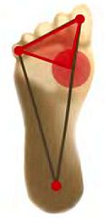 Вы можете увидеть точно такую же архитектуру нашей стопы, взглянув на нее сбоку. Один треугольник формируется щиколоткой, большим пальцем и пяткой. Второй треугольник образуется щиколоткой, подушечкой стопы и пяткой, а третий – щиколоткой, большим пальцем и подушечкой стопы. Для боевой составляющей дачэн-цюань вам надо понимать и использовать силу третьего треугольника.