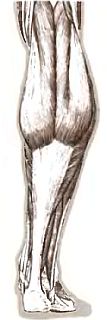 Стоя в этой более сложной и продвинутой позиции, вы совершенно естественно задействуете большие трехглавые мышцы голени. Следующая ступень этой тренировки состоит в концентрации нашего внимания на этих самых мышцах, а точнее – на большой икроножной мышце. Попробуйте распознать ее, с тем чтобы далее вы могли сокращать ее на несколько секунд, не задействуя при этом мышц колена, бедра или ягодицы и сохраняя верхнюю часть туловища полностью расслабленной.