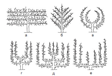 Искусственно сформированные кроны подразделяются на плоские, сферические и конусовидные (две последние относятся к объемным формам).