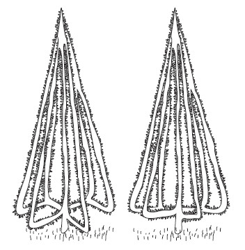 • все боковые ветви существенно тоньше ствола и отходят от него под прямыми или тупыми углами, что достигается их отгибанием;
