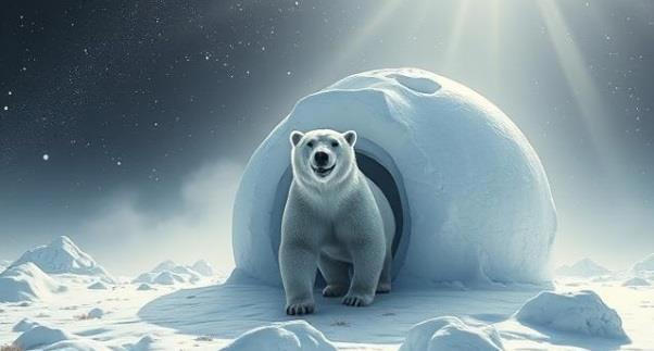 Бесформенный ком шерсти, подёргиваясь, превращается в белую медведицу и, недовольно сопя, выходит на заметённую снегом улицу.