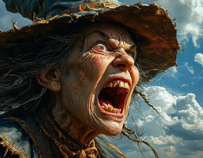 Так всё вокруг затряслось и затрепетало вместе со мной, что ни словами не рассказать, ни карандашами расписать. Даже показалось, что воочию увидел перед собой огромную орущую башку презлющей старухи, похожей на ведьму из мультика.