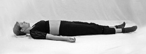8 г) Напряжение мышц и состояние тела в положении «лежа свободно». Внимание на степень напряжения всех мышц тела. Мышцы, управляющие головой, напряжены лишь настолько, чтобы голова свободно оставалась в описанном положении, не заваливалась в сторону.