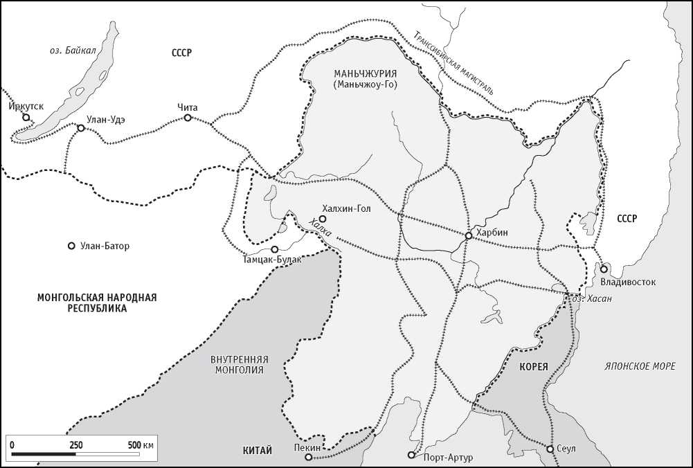 Прежде чем перейти к описанию действий Жукова летом 1939 года, необходимо хотя бы коротко изложить стратегическую ситуацию в регионе, приведшую к необъявленной войне на Халхин-Голе. После унизительного поражения в Русско-японской войне 1904–1905 годов, в результате которой она была вытеснена из Маньчжурии, Россия боялась, что в руки Японии попадет и вся Сибирь. В 1918 г. Токио направил свои войска в Сибирь в рамках интервенции стран Антанты и оккупировал значительную часть Транссибирской железнодорожной магистрали. Японские войска эвакуировались с советской территории только в 1922 году и с крайней неохотой. В 1919 году, на китайском полуострове Квантун (Гуаньдун), находившемся под властью Японии, была создана Квантунская армия, имевшая широкую автономию от Токио. Очень скоро она стала крупной силой в регионе. Во всех планах и Квантунской армии, и имперского Генерального штаба СССР указывался как главный противник Японии. В сентябре 1931 года Квантунской армией был спровоцирован инцидент, получивший название Мукденского, после чего, в результате молниеносно проведенной операции, Япония захватила огромную китайскую провинцию Маньчжурия. В следующем году на ее территории было создано государство Маньчжоу-Го, находившееся под японским протекторатом. Так японские и советские войска оказались друг напротив друга вдоль общей границы протяженностью в 5000 км. Москва предложила заключить договор о ненападении, но Токио в декабре 1931 года отверг это предложение. Почти тотчас после этого обе стороны зафиксировали первые пограничные инциденты.