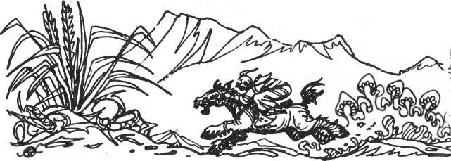 Миновав окраины Скудры, Марко оглянулся на центр города. Всё было темно и тихо под барабанящим дождём. Он отвернулся и посмотрел на северную дорогу. Её лишь слегка подремонтировали, поэтому единственным препятствием для быстрого роста грибов оставались копыта и колёса повозок. Они просто давили всю растительность, превращая её в склизкую грязь. Несмотря на подковы с шипами, лошадь судьи скользила и спотыкалась на пригорках. Когда дорога пошла круто вверх, Марко пришлось спешиться и вести лошадь за собой, жалея, что он не украл вместо лошади паксора. Это были слоноподобные травоядные рептилии, которых люди Кфорри одомашнили и использовали как тягловых животных. Дождь прекратился. Марко продолжал идти. Мокрые ветви и стебли – достигшие размеров деревьев травы или мхи – нависали над дорогой и задевали путника. Действующий вулкан пылал тускло-красным цветом на фоне дождевых туч и дыма. Между облаками появились просветы, сквозь которые Марко мельком увидел Галлио, ближайшую и ярчайшую луну, одну из трёх.