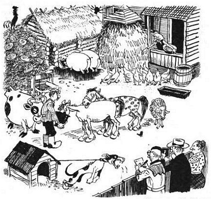 Обзавелись Дуголуковы на старости лет индивидуальным огородом, коровником, конюшней, свинарником, день и ночь возятся со своим рогатым и безрогим скотом. Где только можно, раздобыли висячих и дверных замков, все у них на запоре. Во дворе будка, в будке собака Бобик. На огороде другая собака – Трезор. В комнатах сундуки, в сундуках – мануфактура. Набрали себе – благо бесплатно! – костюмов, шуб, плащей и платьев невпроворот. Принесут домой – и в сундук, под замок. А ходят в самой что ни на есть затрапезной одежонке.