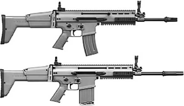 – FN SCAR L (Light) – штурмовая винтовка калибра.223 Remington, комплектующаяся магазинами стандарта STANAG. Этот вариант предназначен для вооружения бойцов штурмовых групп и войск второго эшелона;