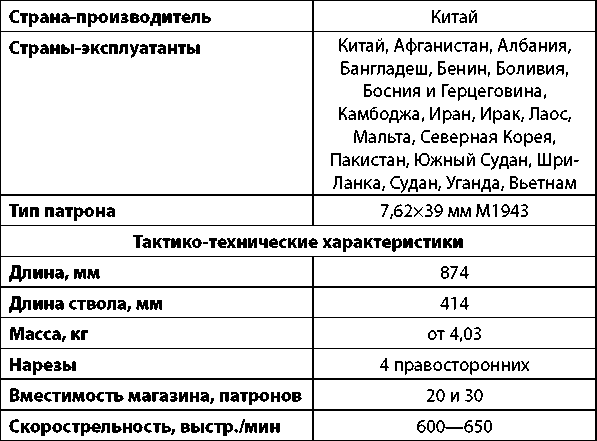 Type 56 китайского производства, по сути, является почти точной копией автомата Калашникова. Действительно, Китай производит Type 56 по лицензии. Однако отличить китайский вариант очень просто – Type 56 комплектуется откидным трехгранным игольчатым штыком, тогда как в комплект советского автомата входит клинковый штык-нож.