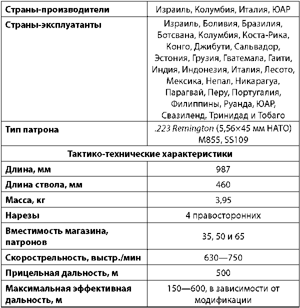 – IMI Galil MAR – субкомпактный штурмовой карабин со стволом длиной 210 мм;