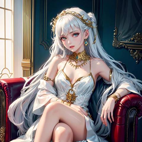 Богиня не заставила себя ждать – сразу появилась перед неожиданным «препятствием» в лице Сэм. Безумно красивая, как и все бессмертные. Белые одежды, белые волосы – чем-то она напоминала Селесту, хотя конечно перепутать их было бы сложно. Над головой богини висела небольшая корона из драгоценного аурамита.