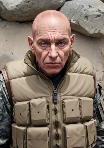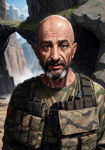 Спецназовцы ненадолго раздвинули свои щиты, и оттуда вышел смуглый мужчина невысокого роста с короткой бородкой, плавно переходящей в усы и бакенбарды. Насколько я понимаю, это Сталкер, лидер военной группировки.
