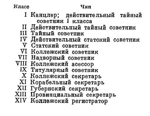 В результате к началу XIX в. номенклатура гражданских чинов приобрела такой вид: