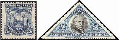 ЭКВАДОР[Ecuador], Республика Эквадор – гос-во на сев.-зап. Южн. Америки и на арх. Галапагос. Первые марки вып. в 1865, первые памятные – 1896. В 1902 во время пожара в г. Гуаякиль были похищены запасы марок. На оставшихся в почт. отделениях марках в разных городах сделаны вручную различные надпечатки; существует большое число видов. Авиапочт. марки изд. с 1929. В 1928—46 на марках налога на табак были сделаны надпечатки и они использ. в качестве экспрессных, почт., служебных и почт.-налоговых. Служебные марки вып. в 1884—1964, доплатные – 1896– 1958, почт.-налоговые – с 1920, первый блок – в 1952. В честь Игр XXII Олимпиады в Москве в 1980 были отпечатаны марки и блоки.