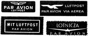 ЯРЛЫКИ АВИАПОЧТОВЫЕ– ярлыки установленной (обычно прямоугольной) формы, наклеиваемые на авиапочт. отправления для удобства их обработки и выделения, имеют надпись «АВИА» на яз. страны-эмиссионера и на франц. яз.