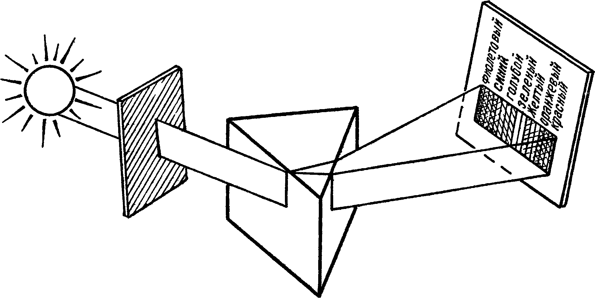 Когда вы греетесь на солнце, вы, наверное, не задумываетесь о сложном составе солнечного излучения, хотя иногда солнечные ожоги и напоминают вам об этом. Исаак Ньютон (1643—1727) жил в Англии, где солнце светит не так уж ярко, тем не менее он захотел узнать, из чего состоит солнечный свет. Чтобы выяснить это, Ньютон поставил в 1666 г. опыт, знакомый теперь каждому школьнику: пропуская луч солнца сквозь призму, он обнаружил позади нее на стене радугу – спектр солнечного света. Впоследствии его соотечественник Томас Юнг (1773—1829) выяснил, что каждому цвету радуги-спектра соответствует своя длина волны солнечного излучения: самые длинные волны у красного цвета – 650 нм; у зеленого короче – 520 нм; еще короче у фиолетового– 400 нм (1 нм = 10-7 см).