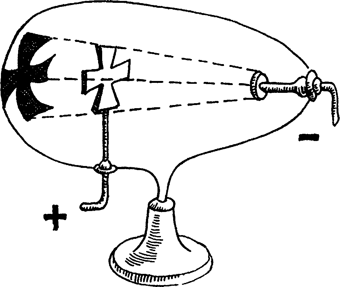 Ученик Плюккера Евгений Гольдштейн (1850—1931) в 1876 г. дал им название: катодные лучи. Еще раньше, в 1869 г., другой его ученик, Иоганн Вильгельм Гитторф (1824—1914), обнаружил отклонение этих лучей в магнитном поле, и, наконец, в 1879 г. Кромвель Вэрли (1828—1883) показал, что они заряжены отрицательно.