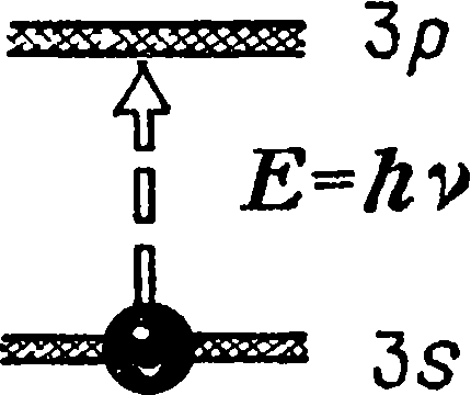 В частности, теперь очень просто можно было объяснить опыт Кирхгофа и Бунзена с парами натрия. Действительно, когда свет проходит через пары натрия, атомы которого находятся в основном состоянии, он переводит их в возбужденное состояние и затрачивает на это энергию кванта Е = hv, частота которого v как раз и совпадает с частотой D-линии натрия. Поэтому прошедший свет уже не содержит лучей с этой частотой, и на шкале спектроскопа мы видим сплошной спектр, перерезанный в желтой части темной линией D. В обратном процессе, когда атомы натрия переходят из возбужденного состояния в основное, они излучают свет с той же частотой v, которую прежде поглотили, то есть ту же D-линию, но теперь уже ярко-желтую.