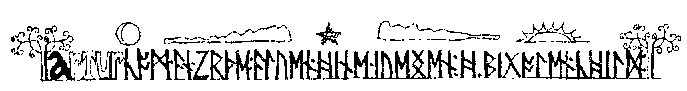 Как только король Артур пришел на землю (т. е. родился), эльфы приняли его. Они заговорили этого ребенка самым могучим волшебством… (Среднеанглийский язык; англосаксонские руны.)