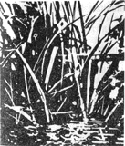 Весной видимая жизнь на болотце начинается коротенькой песенкой камышовой овсянки, которая прилетает, когда еще и лед не растаял, а ивняки только-только одеваются серебристо-белыми барашками. Стоя на пушистой веточке, черноголовый певец чуть вскидывает голову, и раздается в чистом поле звонкая песенка в овсяночьем стиле. То она неразборчива, как скороговорка, то, наоборот, каждый звук в ней четок и отделен от других, и птица как будто не поет, а неторопливо отзванивает: «цвень-цвень-цюнь». Пауза, и опять: «цвень-цвень-цюнь». Получается пореже, чем у большой синицы, и последний слог пониже первых. Я как-то не замечал, чтобы камышовая овсянка любила воду больше других сородичей, но гнездится она неподалеку от воды.