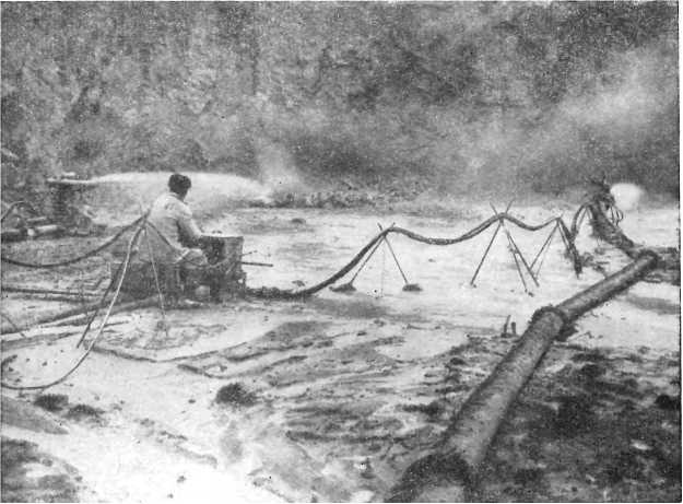 В северных и восточных районах нашей страны – на Лене, в Магаданской области, в Забайкалье, на Амуре, где россыпи, как правило, находятся в вечномерзлом состоянии, гидравлический способ разработки с естественным напором был впервые применен сравнительно недавно.