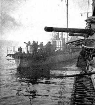 При стрельбе “Гебена” наблюдалось превосходство материальной части его артиллерии – немцы добились большей кучности падений снарядов и хорошей скорострельности. Однако ни одного попадания противник не добился, хотя, как сообщалось в рапорте командованию, его “снаряды рвались столь близко от корабля (“Евстафия”,-JI.K), что на палубе и спардеке было найдено более 30 штук осколков”. Корпус линкора испытывал в бою настолько сильные сотрясения, что А.А. Эбергард несколько раз посылал старшего офицера осмотреть нижние помещения, чтобы убедиться, не получил ли корабль пробоины.