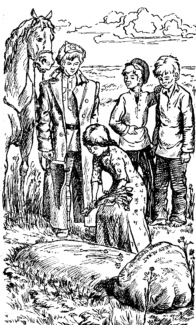 Но вот со двора рыжего Илюхи показалась стая встревоженных ребят. Они таращили глаза на незнакомого всадника и готовы были броситься врассыпную при первом знаке опасности.