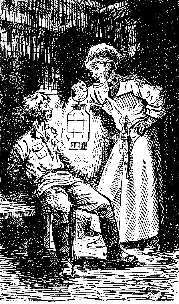 Кадет поставил фонарь на пол и прохаживался, заложив руки за спину.