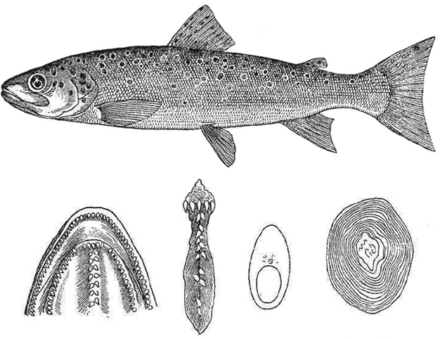 Вообще же цвет форели находится в очень большой зависимости от цвета воды и почвы, от пищи и даже времени года, так как во время нереста он бывает значительно темнее. Замечено, что в известковой воде форели всегда светлее и серебристее, а в речках, текущих по илистому или торфяному дну, бывают очень темного цвета.