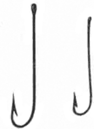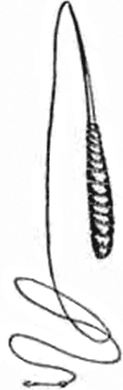 Поплавки для зимнего ужения, кажется, употребляются только на Нижней Волге, в Саратовской губернии, и представляют только то удобство, что удильник (мотылек) можно положить на лед. Делаются они из пробки, коры осокора или из листьев палочника, из которых приготовляется рукоятка зимнего удилища. Для того чтобы на нем не намерзала вода, многие саратовские рыболовы делают такие поплавки, которые тонут от тяжести грузила. Крючки употребляются преимущественно мотыльные, т. е. с длинным стержнем мелких номеров (рис. 21). Московские удильщики ловят обязательно на двойчатки; саратовские – тоже на два крючка, но крючки эти привязываются выше груза, как это видно из рисунка. Подмосковные промышленники, удящие ершей для продажи, чтобы сохранить их дольше живыми, нарочно спиливают бородки у крючков; на зауральских озерах также ловят зимой ершей (на мормыша) на крючки без зазубрины, ради большей скорости вынимания крючка. Вообще все рыбы зимой, а ерш в особенности, настолько вялы и так мало оказывают сопротивления, что при хорошем клеве даже неблагоразумно ловить на обыкновенные крючки, ибо вынимать в мороз голой рукой крючок, заглотанный колючим ершом, не особенно приятно. Крючки же без бородки удобны тем, что большей частью освобождаются из пасти рыбы в тот же момент, когда она выброшена на лед.