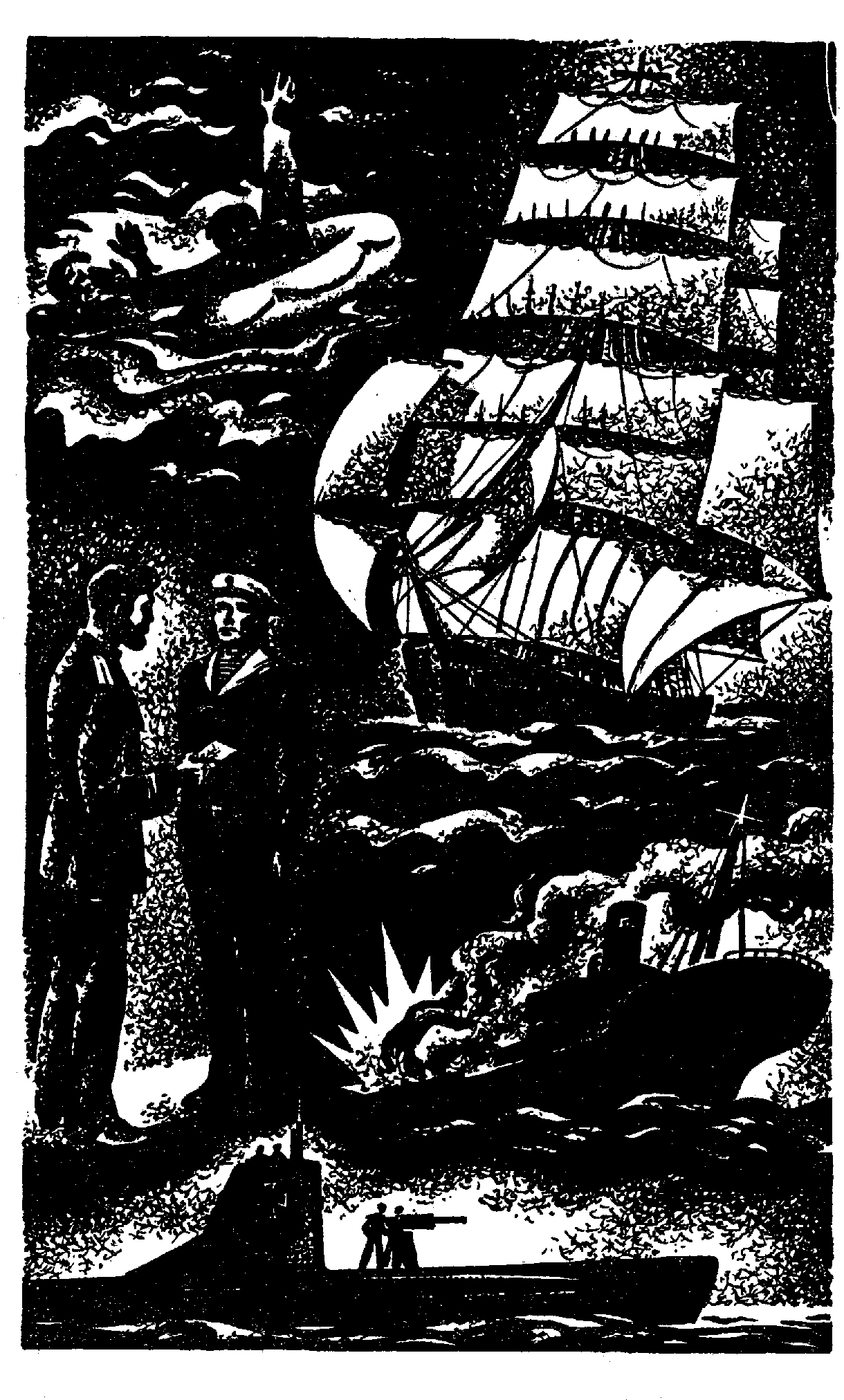 «Орион» шел в кильватер головному миноносцу, а когда тот разворачивался и уходил, делая круг, словно овчарка, собирая и подгоняя свое стадо, клипер ложился в дрейф и поджидал тихоходные паровики. Командир «Ориона», к восторгу матросов, не уравнивал с ними скорость. Вот тогда Воин Андреевич и заговорил с юнгой о клипере; его слова навсегда запали в сердце Леши Головина.