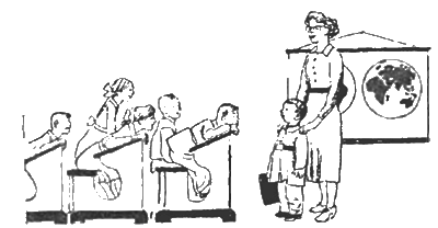 Мальчики и девочки, сидевшие на партах, с любопытством глядели на новичка. А он стоял спокойно, держа свой портфельчик с учебниками за длинную ручку, и улыбался весьма независимо.