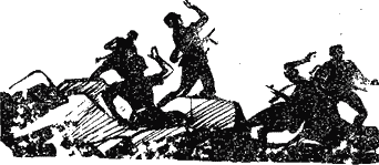 Я должен идти третьим. С трудом заставил себя оторваться от стены дома и двинуться вперед. Душный, горячий воздух облепил со всех сторон. У меня появилось такое ощущение, словно это не воздух, а вата. Ее нужно разводить руками, чтобы двигаться вперед. С трудом я различил впереди, шагах в пяти, фигуру Николая и, прижимаясь к ограде палисадника, бросился за ним. Сзади слышалось прерывистое дыхание бегущих бойцов. Это придало мне бодрости. Вот и кончились палисадники с жасмином и пахучими цветами. Их аромат перебивал даже горькие запахи гари.