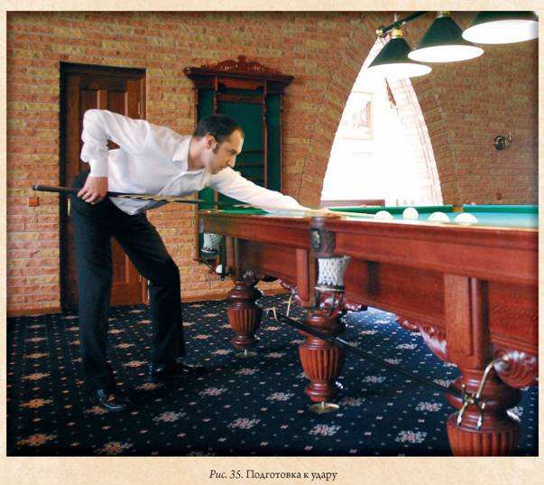 В любом деле важна система, которая предусматривает вполне определенный порядок действий. Приняв вызов соперника и встав к бильярдному столу, вы должны действовать в определенной последовательности: во-первых, нужно внимательно оценить позицию на столе, во-вторых, принять игровое решение и, в-третьих, подготовиться к удару. В свою очередь, подготовка к прицельному удару предусматривает следующие действия: выбор точки прицеливания и исходного положения кия, подход к столу и занятие устойчивой игровой стойки, легкий хват кия и постановку надежного упора, правильный прицел и разминочные маховые движения. Настоящие мастера к любому, даже самому очевидному и простому, удару готовятся одинаково тщательно, действуя каждый раз по одной и той же схеме. Следует учитывать также, что перед каждым ударом необходимо «мелить» наклейку кия во избежание кикса. Что такое кикс, вы уже знаете.