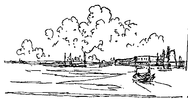 …На мачтах зажглись огни. День умирал. Над длинными прямыми плесами висели насыщенные багрянцем и золотом облака. К ним тихо подбирались сумерки и гасили одно облако за другим. Синие и зеленые тени окутывали реку и колыхались в такт мерному движению воды. Река стала безлюдна и пустынна. Только на берегах кое-где струились еле видные дымки над деревенькой или горел рыбачий костер около перевернутой на песке лодки. В сумерках Жигули маячили неясными причудливыми очертаниями…