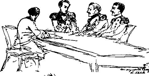 Генерал ходил по каюте, заложив руки за спину. Он хмурился и явно был чем-то недоволен. Перед тем как начать говорить, Раевский несколько раз снимал и надевал очки, оттягивая разговор.