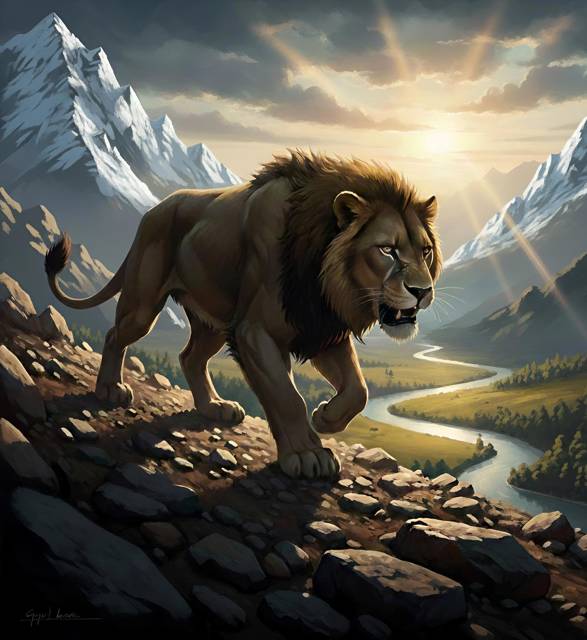 Лев не медлил. Видя, что жертва повержена, он издал торжествующий рык и совершил прыжок. Огромная тень закрыла заходящее солнце.