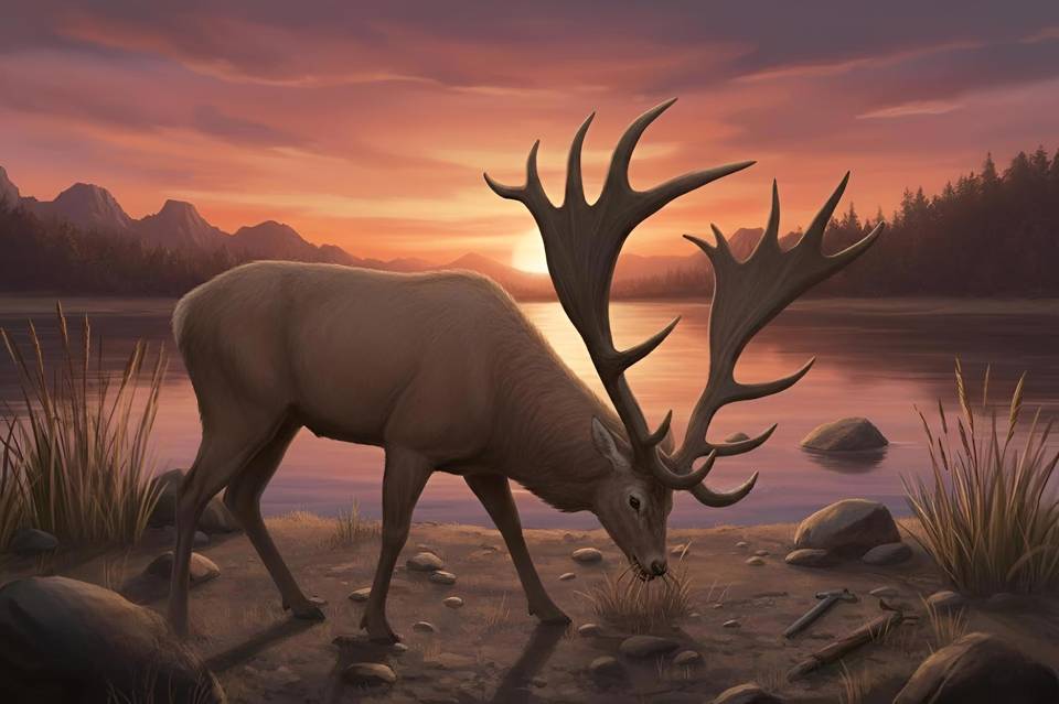 Чёткий, глубокий отпечаток высокого раздвоенного копыта. И размер не оставлял сомнений – это большерогий олень. Полтонны веса, размах рогов до трёх с половиной метров, а рост больше двух в холке. Невероятное существо. Он вымер где-то семь тысяч лет назад… точно, более верно будет – за пять тысяч лет до нашей эры. Ой, всё! В любом случае он, вероятно, мигрирует с зимних стоянок на лето в горы. И это уже точно сообщало, что сейчас примерно конец весны.