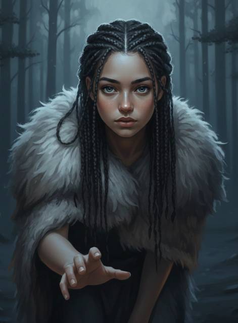 Кожа была смуглой, такого оттенка, который в моем времени назвали бы средиземноморскими. Удивительная генная удача. Тёмные волосы были затейливо заплетены в десятки мелких кос, а глаза – ясные, глубокие – смотрели на меня без тени той враждебности, к которой я уже начал привыкать. В руках она бережно сжимала небольшой кожаный свёрток, какой-то округлый предмет и несколько небольших мехов.