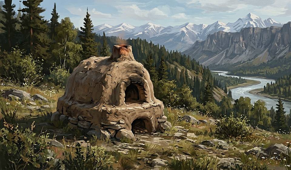 Ну, хоть дальше осталось только просушить. Пришлось реквизировать шкуры одного из шалашей – уж потеснились, ничего страшного. Но они укрыли печь, а внутри я поставил выдолбленные миски с водой, чтобы поддерживать влажность. И в конце концов, в финальный день мы разожгли небольшой костёр в топке, просушили окончательно.