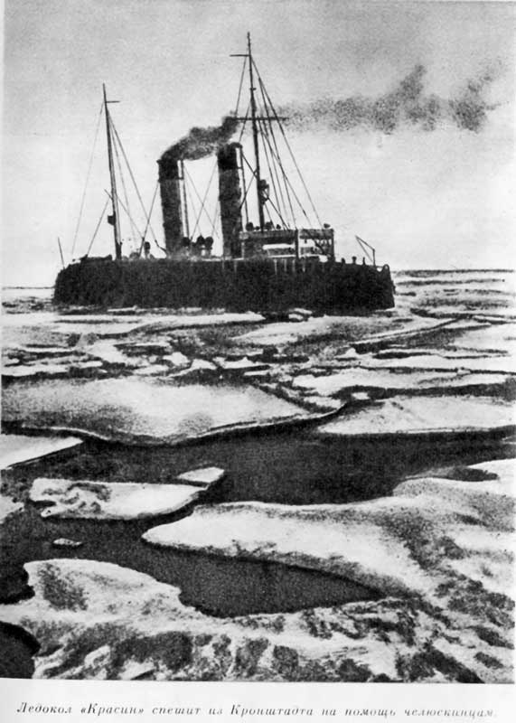 Ледокол «Красин» спешит из Кронштадта на помощь челюскинцам.